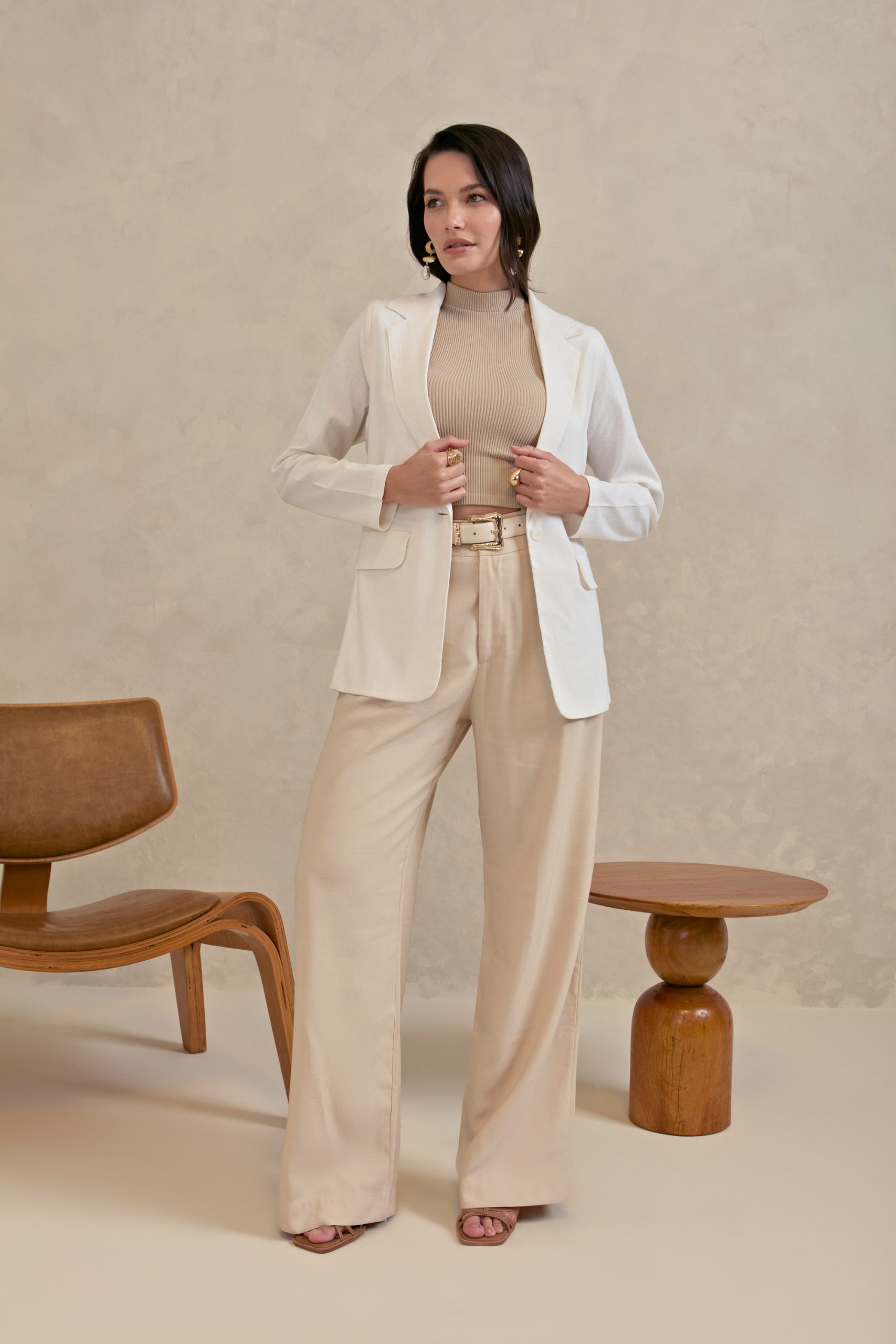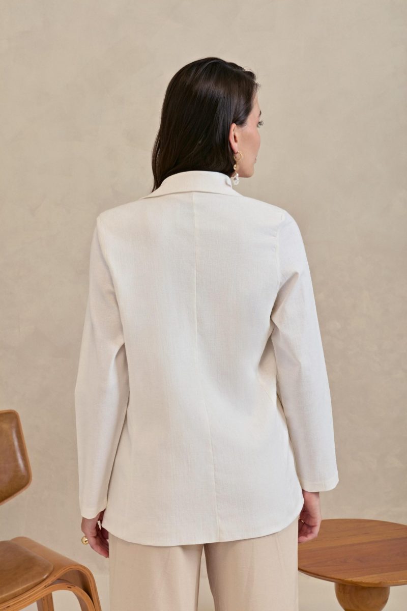 -Detalhe: Peça clássica com tecido de linho. Possui duas lapelas no