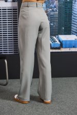 Sua modelagem reta ao corpo alonga a silhueta com fluidez e requinte, enquanto o cós com detalhe especial esconde o botão, proporcionando um acabamento minimalista que valoriza a cintura. Os bolsos faca adicionam praticidade e um toque refinado ao design.