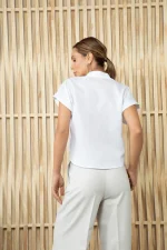 -Detalhe: Abertura lateral e dobra na manga. Tecido transpirável.