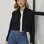 -Detalhe: Tecido texturizado e duas lapelas frontais.