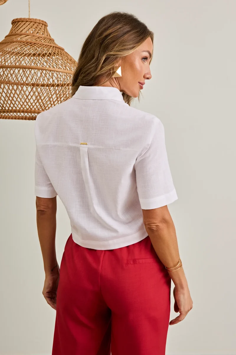 -Detalhe: Camisa Cropped com dois bolsos frontais.
