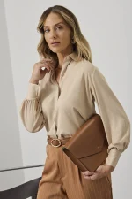 Camisa Feminina Manga Longa Bege