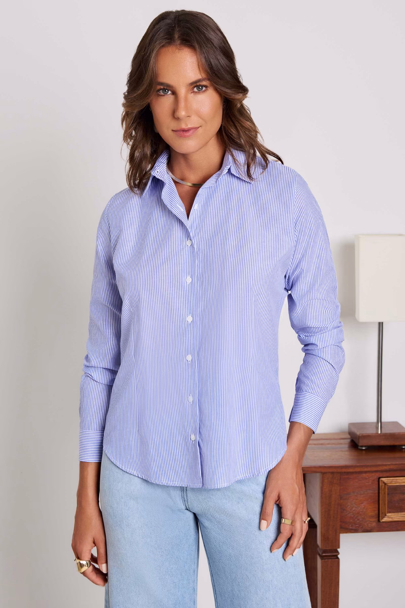 -Detalhe: Camisa com botões acinturada.