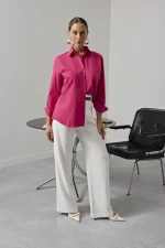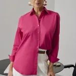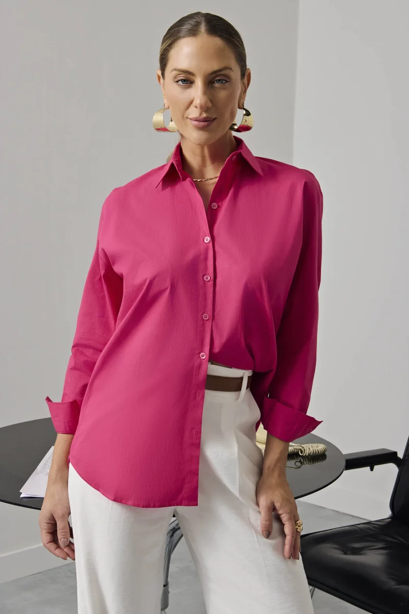 Camisa Feminina Oversize Manga Longa Rosa