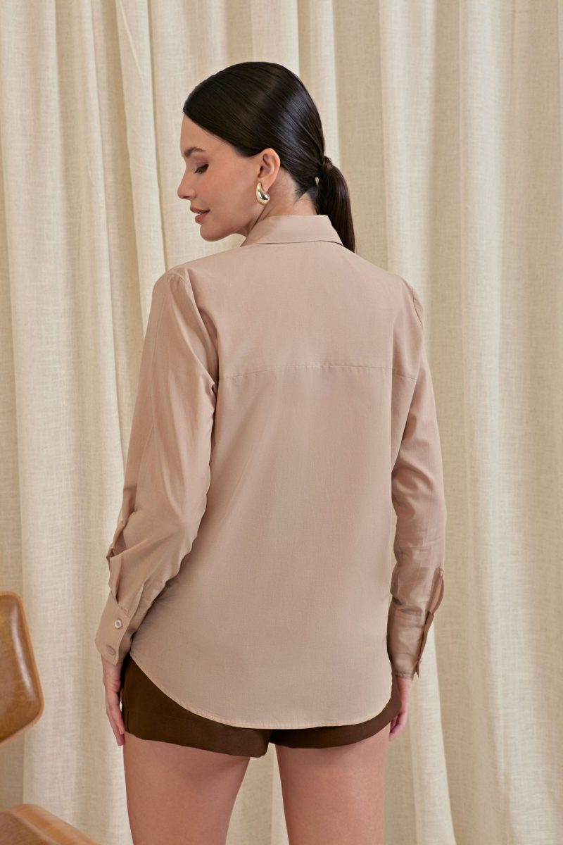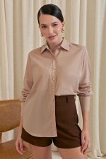A Camisa Feminina Sabrina Manga Longa Bege é confeccionada em algodão, tornando-a muito confortável, com alta respirabilidade e com uma textura elegante. Seu visual moderno possui dois bolsos frontais, gola tradicional, fechamento através de discretos botões na cor da peça e uma delicada abertura nas costas. Elegante e versátil, a Camisa Feminina Sabrina Manga Longa Bege é a peça chave que falta no seu guarda-roupas.