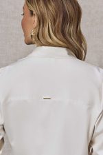 -Botão do punho e gola: com delicado detalhe em dourado.