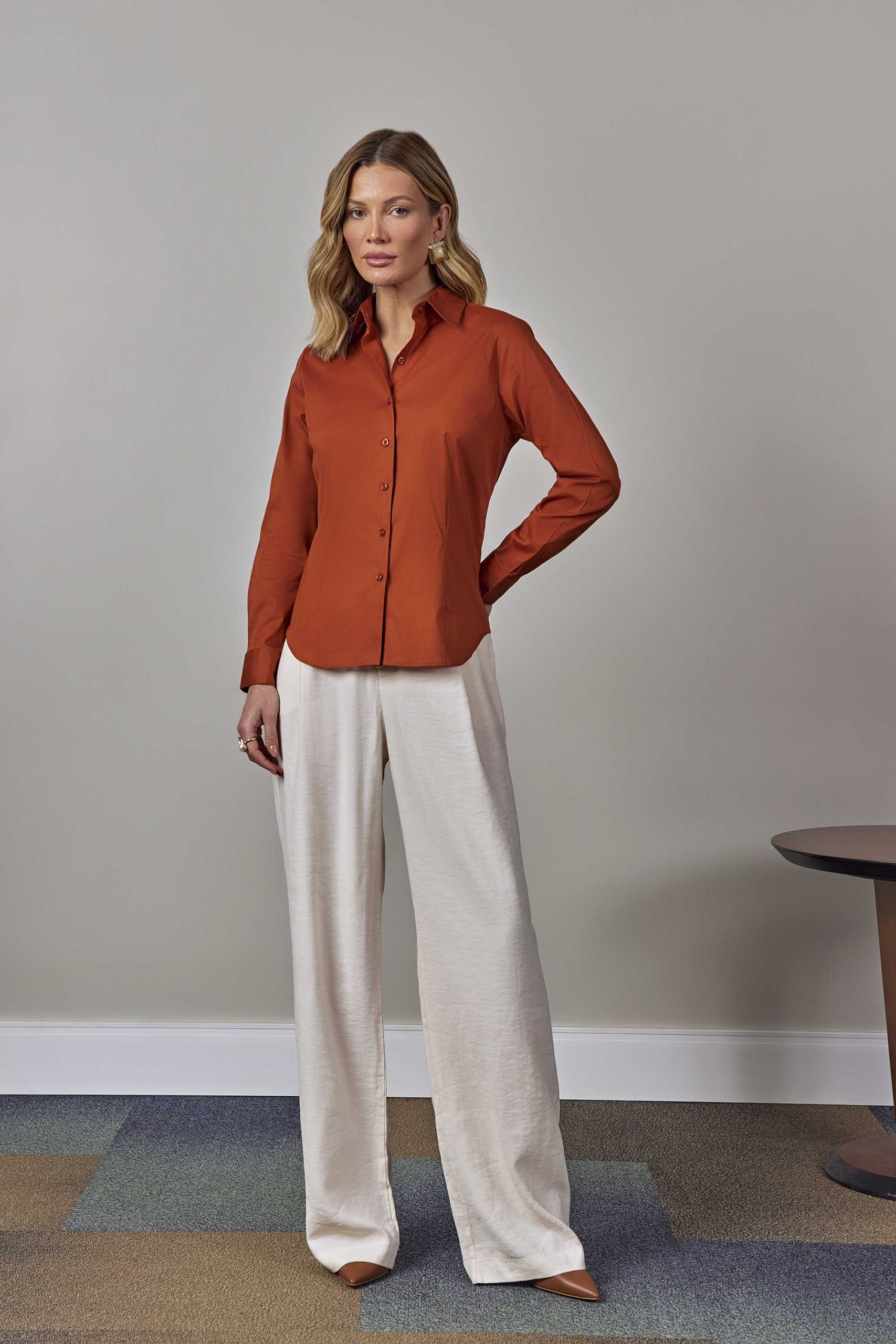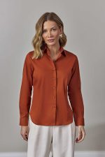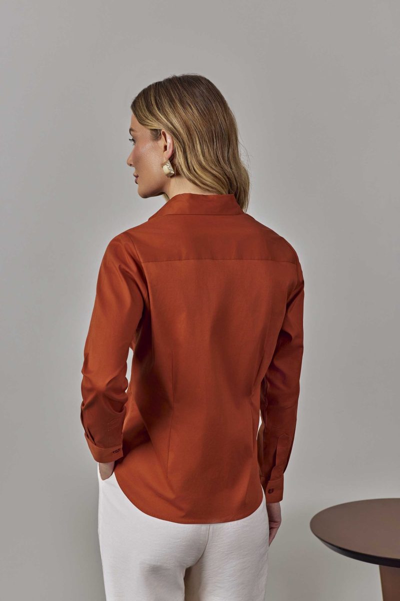 Camisa Feminina Slim Manga Longa de Algodão Terracota