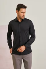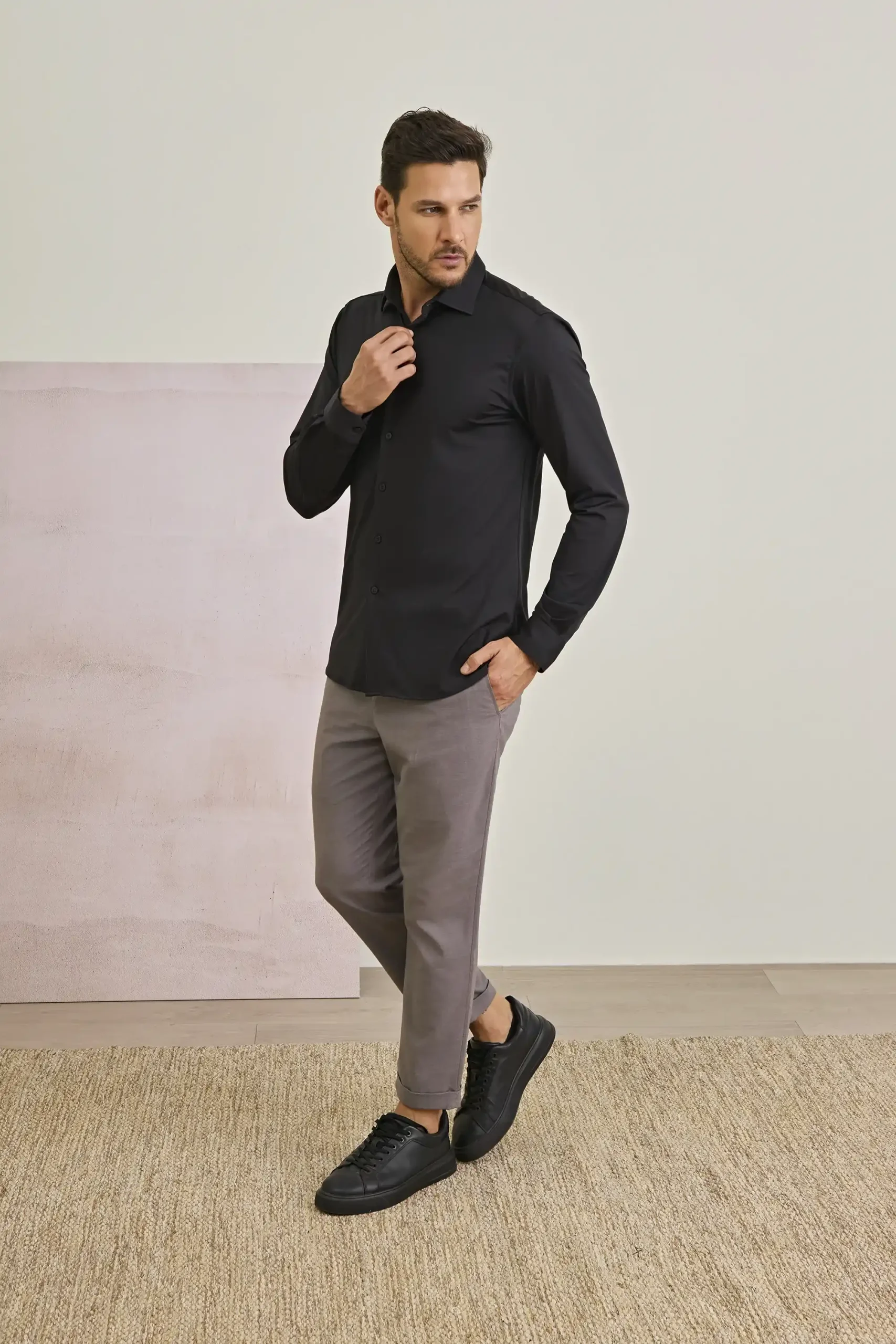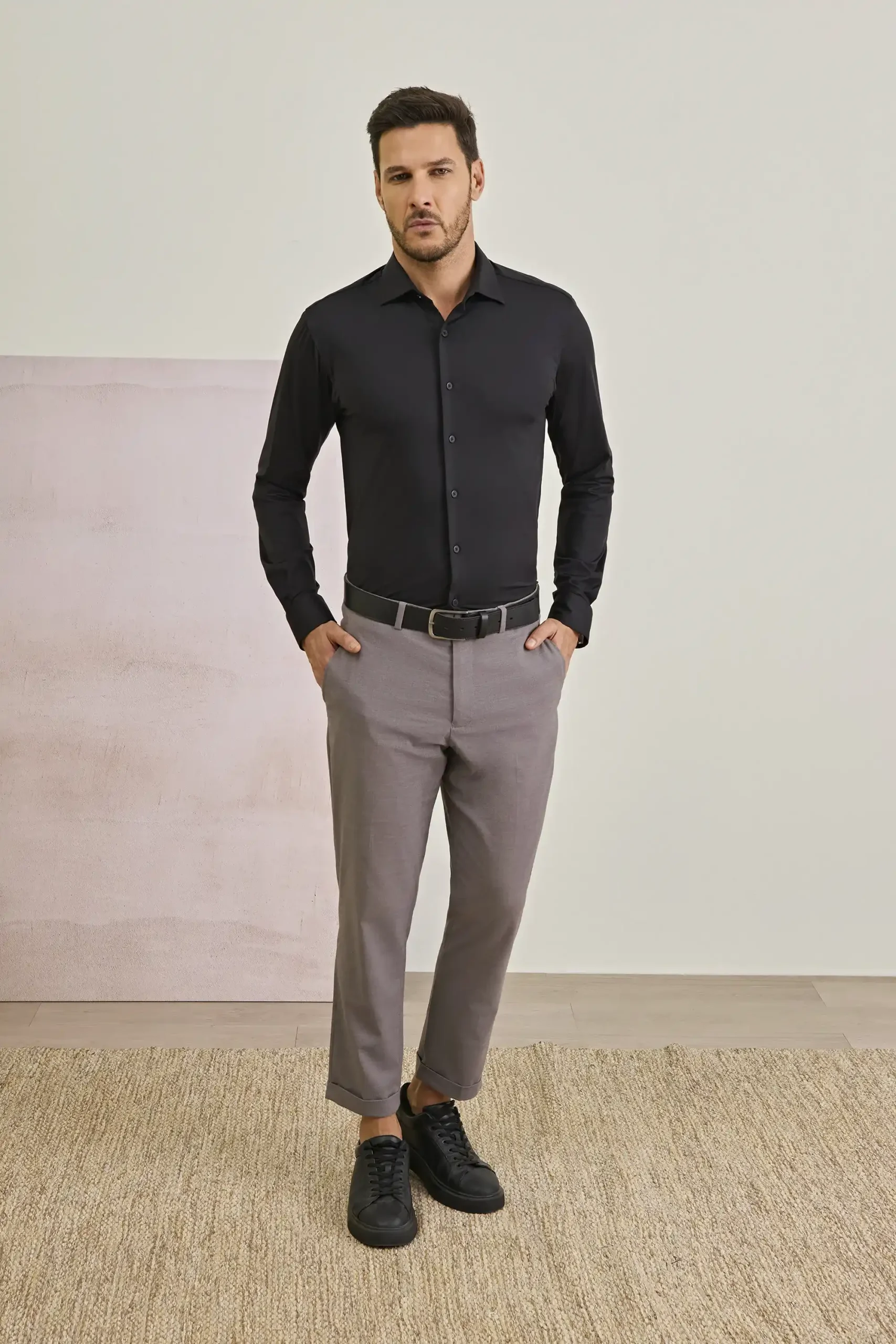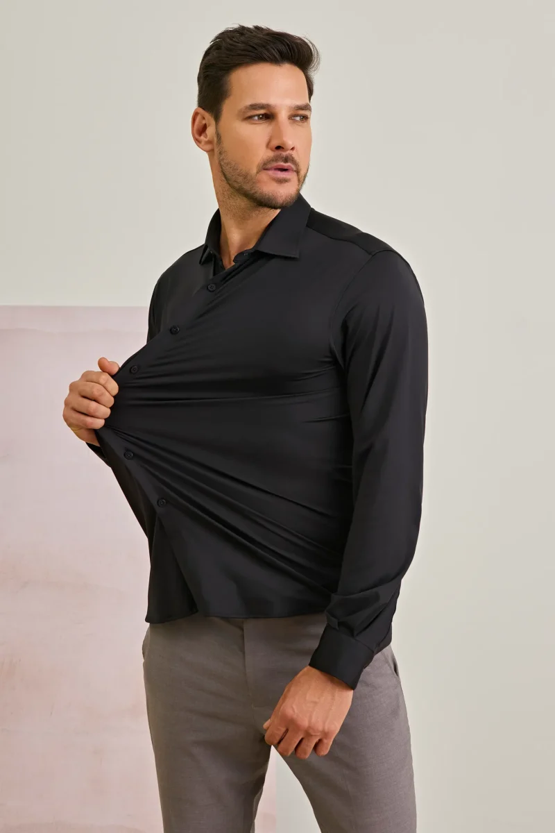 A Camisa Stretch masculina oferece a união perfeita entre tecnologia e estilo. Com modelagem slim, essa peça é confeccionada em um tecido inovador composto por 80% de poliamida e 20% de elastano, garantindo um caimento confortável que acompanha os movimentos do corpo. Altamente funcional, o tecido repele água e não exige passadoria, facilitando a rotina sem abrir mão da elegância. O colarinho estruturado adiciona um toque de sofisticação, mantendo a camisa impecável em qualquer ocasião. Uma escolha ideal para quem busca praticidade e modernidade com máximo conforto.